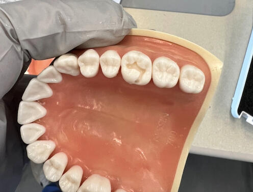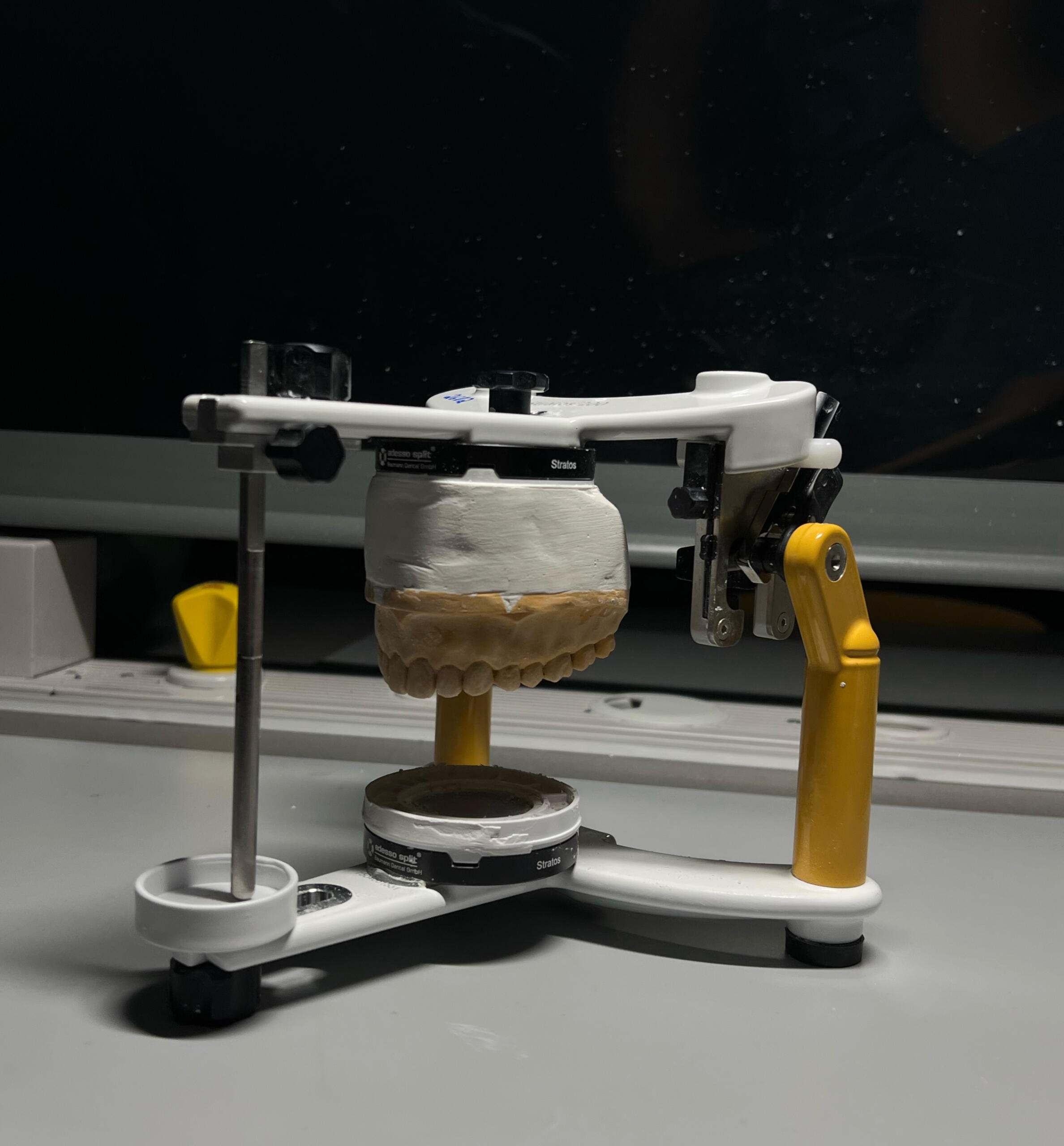 Facebow Transfer from our Dental Anatomy Lab. We took impressions from our typodonts (Fake Patient) and poured them into stone to see how the bite would look. Only the maxillary is shown here. Graded project.