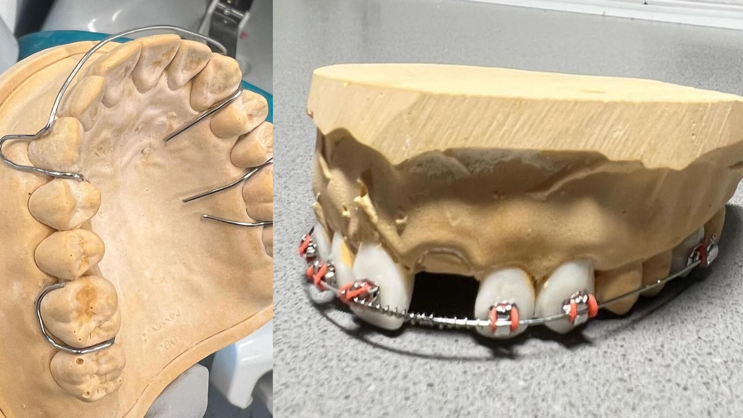 Ortho Lab Left = Hawley Retainer wires, prior to finishing. Right = Normal braces wiring bonded and banded.